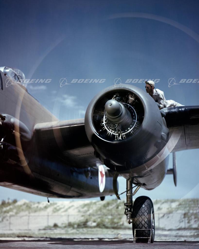 Named after General 'Billy' Mitchell, America's foremost supporter of air power, the B-25 Mitchell first flew on Aug. 19, 1940, and was the first multiengine design to go beyond the prototype stage. North American Aviation built more than 11,000 B-25s for the U.S. Army Air Forces and the U.S. Navy, which called it the PBJ, plus 50 each for China and Great Britain. The B-25 bomber had a wingspan of 67 feet and was 52 feet 11 inches long. One version, the B-25H, was the most heavily armed attack bomber of its time, with a 75-millimeter gun, up to 14 .50 caliber machine guns and 5,000 pounds of bombs carried in an internal bomb bay.