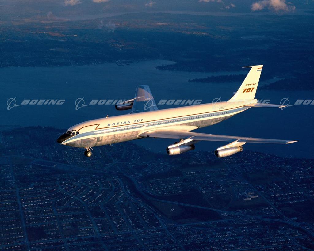 America entered the era of jet transportation on July 15, 1954, when the Boeing Dash 80 prototype for both the KC-135 military tanker and the Model 707 commercial jet transport made its maiden flight from Renton Field, south of Seattle, Wash. The 144-foot-long Model 707 followed the KC-135 into production. On Oct. 26, 1958, Pan American World Airways inaugurated transatlantic 707 jet service between New York and Paris. Boeing custom-designed the 707s to meet a variety of airline requirements, including the 9-foot-shorter 720 for short to medium routes. The long-range 707-320 Intercontinental transport was most ordered and also was modified to become the first Air Force One presidential aircraft, as well as for the E-3 Airborne Warning and Control System (AWACS) and the E-6 submarine communications system.