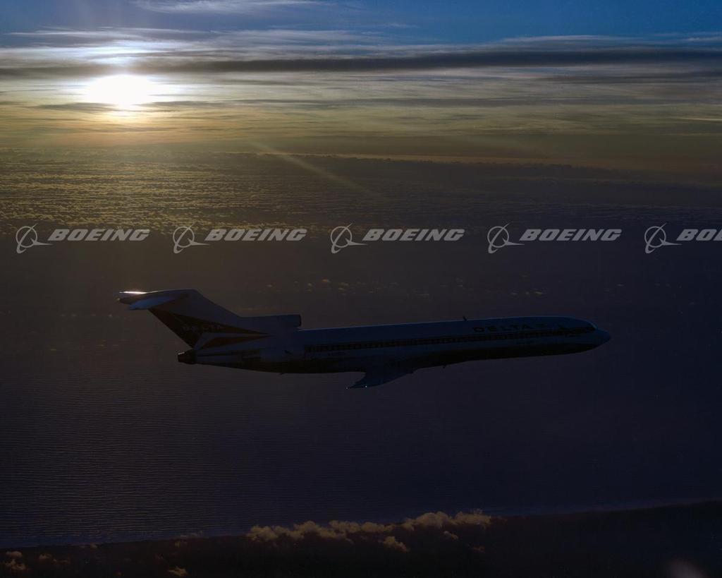 727-200 in Flight at Sunset,