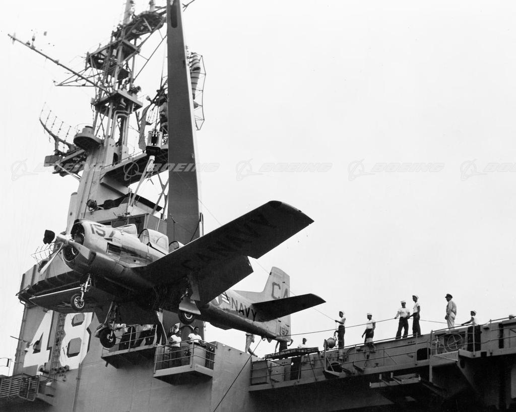 The success of North American Aviation’s Texan trainers led to the development of the NA-159. The production model, the T-28 Trojan, first flew in 1949 and had tricycle-type landing gear. It was the first trainer designed to transition pilots to jet aircraft. The Navy ordered 792 T-28s, 299 of which included an arrester hook for carrier landings.