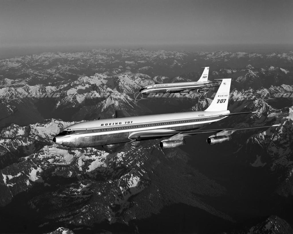 Two 707-120s Flying Over Mt. Rainier in Certification Flight