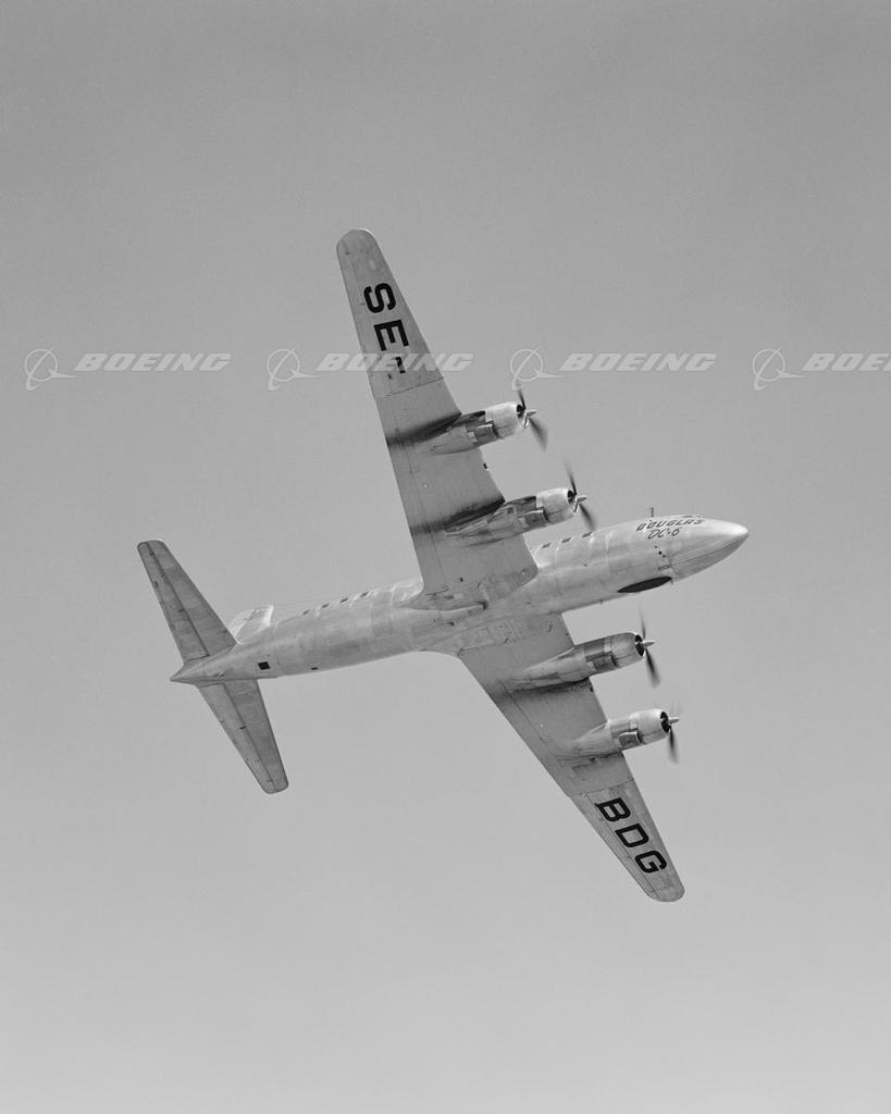 Douglas DC-6 (1946-1958): Nearly identical to the DC-4 in appearance, the DC-6 was first conceived as a long-range military transport. The plane made its maiden flight on February 15, 1946. The key difference between the DC-4 and DC-6 was the DC-6’s larger engines, which were twice as powerful as the engines on the DC-4. The DC-6 was the first Douglas airliner with a pressurized cabin, which enabled it to fly higher and faster, thus taking its passengers “over the weather.” The DC-6 was the most economical commercial aircraft of the propeller era. Its operating costs were among the lowest until jetliners came on the scene. Military versions were produced under the designations C-118 (Air Force) and R6D (Navy). President Harry Truman chose a DC-6 for official use, and christened it the “Independence,” for his hometown in Missouri. During its 12-year production run, Douglas delivered 537 DC-6s, plus 167 military versions.