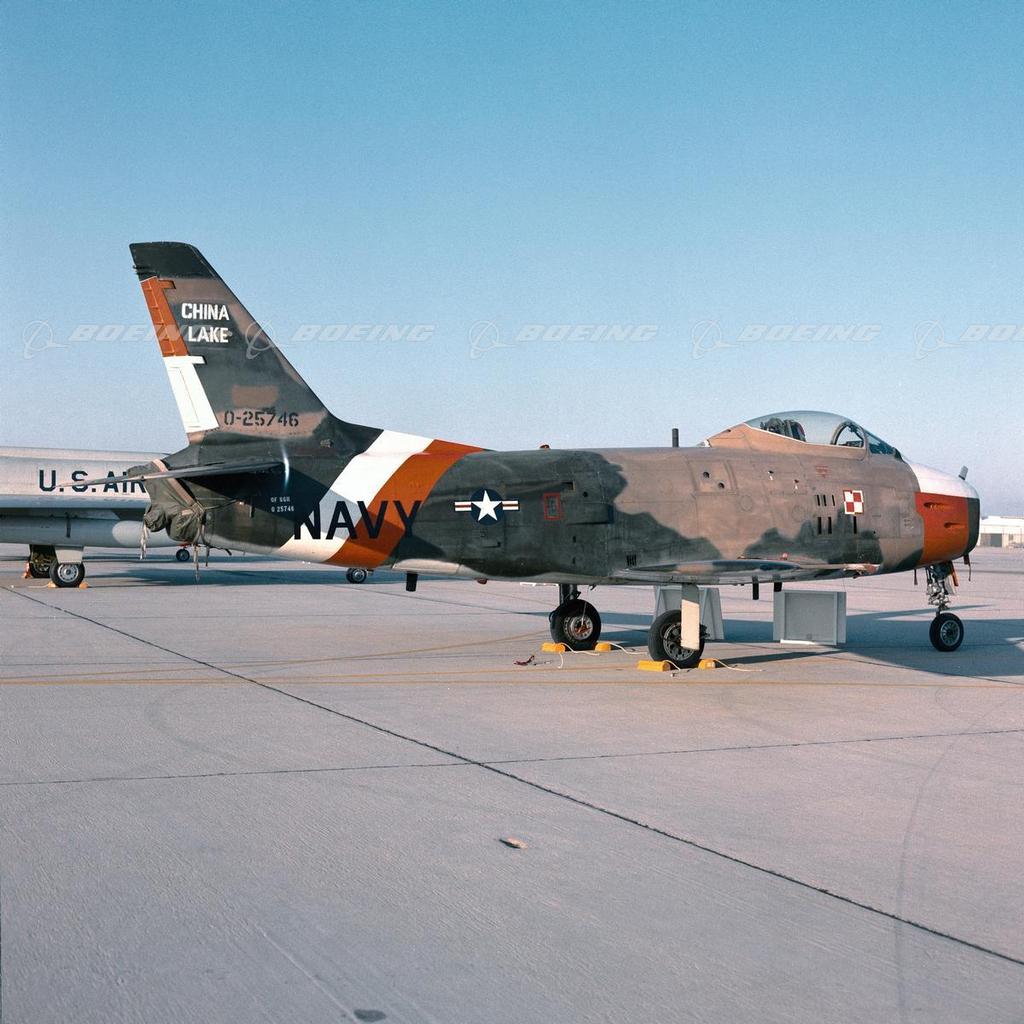 The North American F-86 Sabre Jet made its first flight Oct. 1, 1947, and was America’s first single-seat, swept-wing jet fighter. In 1948, it set a new world speed record of 671 mph, and it was the world’s first-line fighter for more than a decade after it was designed. More than 6,000 Sabre Jets were built worldwide. During the Korean conflict, the Sabre Jet flew 82,177 sorties during 32 months of combat and troop support. The version built for the U.S. Navy and Marine Corps was called the FJ-2 Fury.