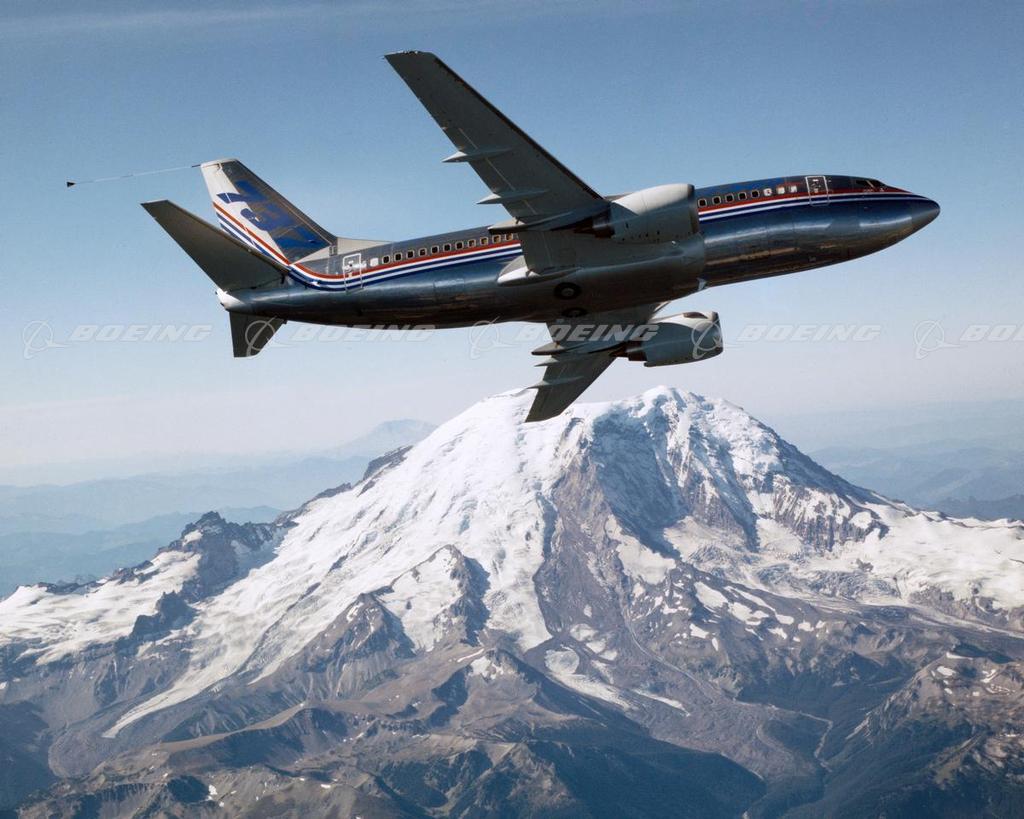 Unpainted 737-500 in Flight Above Mt. Rainier