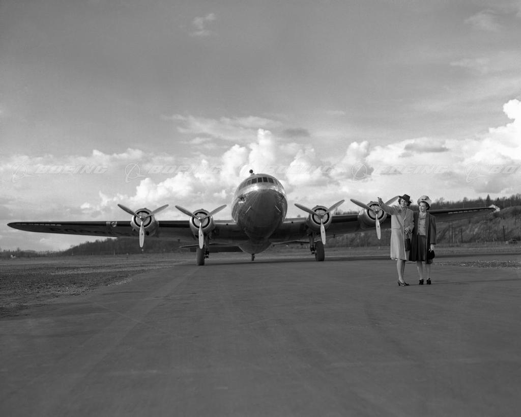 Stewardesses Under 307 Stratoliner, Pointing at Propellers