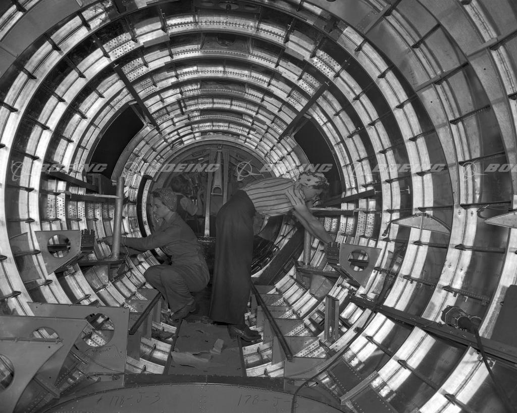Woman Cleaning B-17 Flying Fortress Tail Section Under Construction