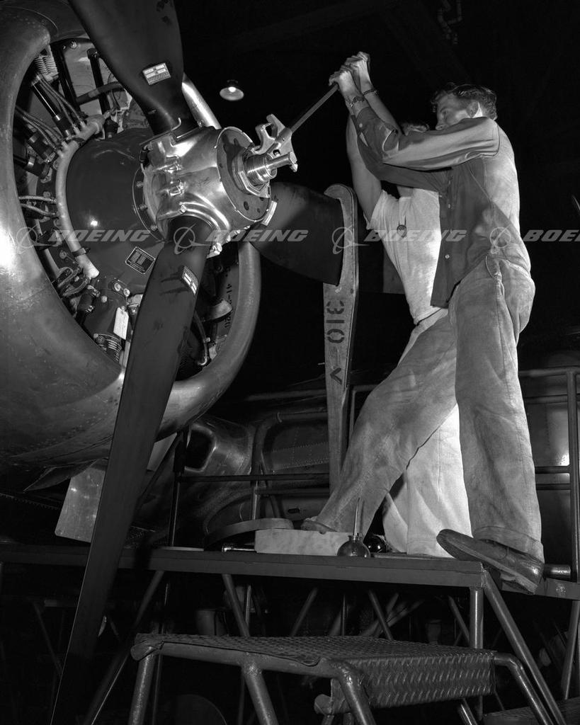 A Douglas "Rosie" in Long Beach Rivets a Boeing B-17 Tail
