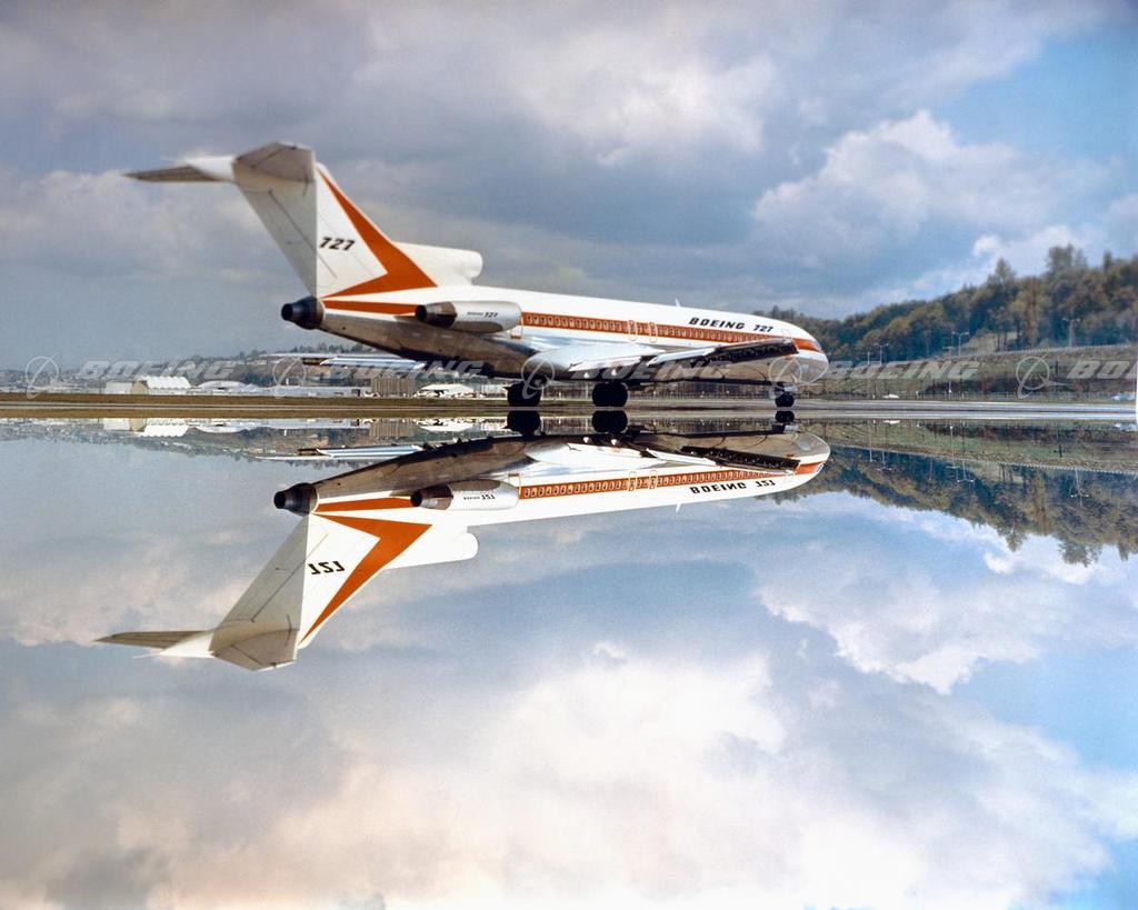 727-200 with Mirror Image Water Reflection