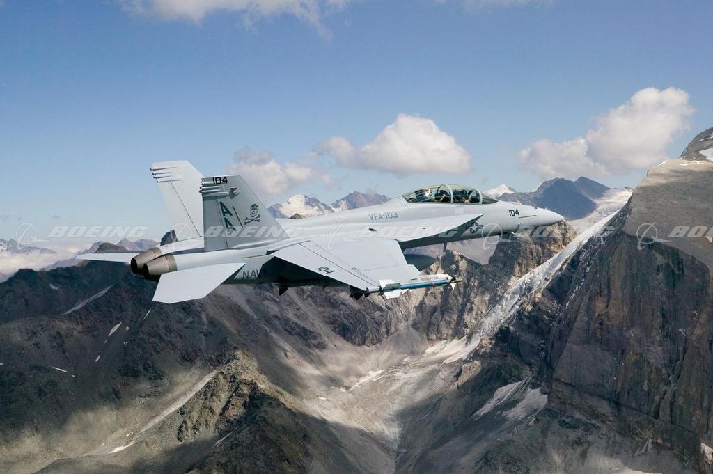F/A-18E/F Super Hornet in Flight over Alpine Glacier
