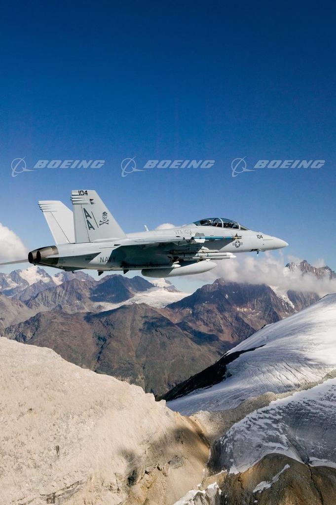 F/A-18E/F Super Hornet in Flight over Alpine Glacier