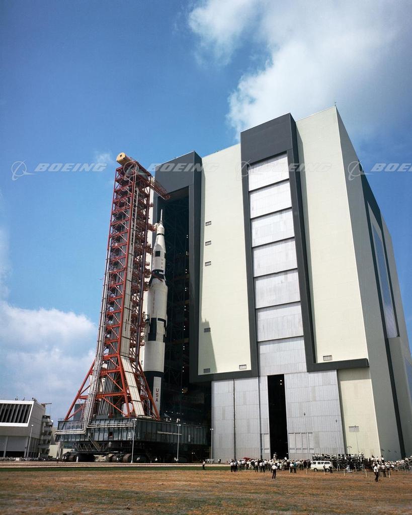 Saturn V Rocket Emerges from Cape Kennedy Vehicle Assembly Building