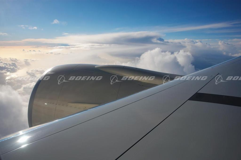 Boeing 777-300ER Engine Nacelle Above Clouds
