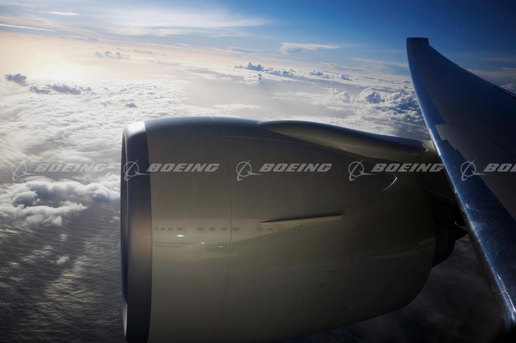 Boeing 777-300ER Engine Nacelle Above Clouds