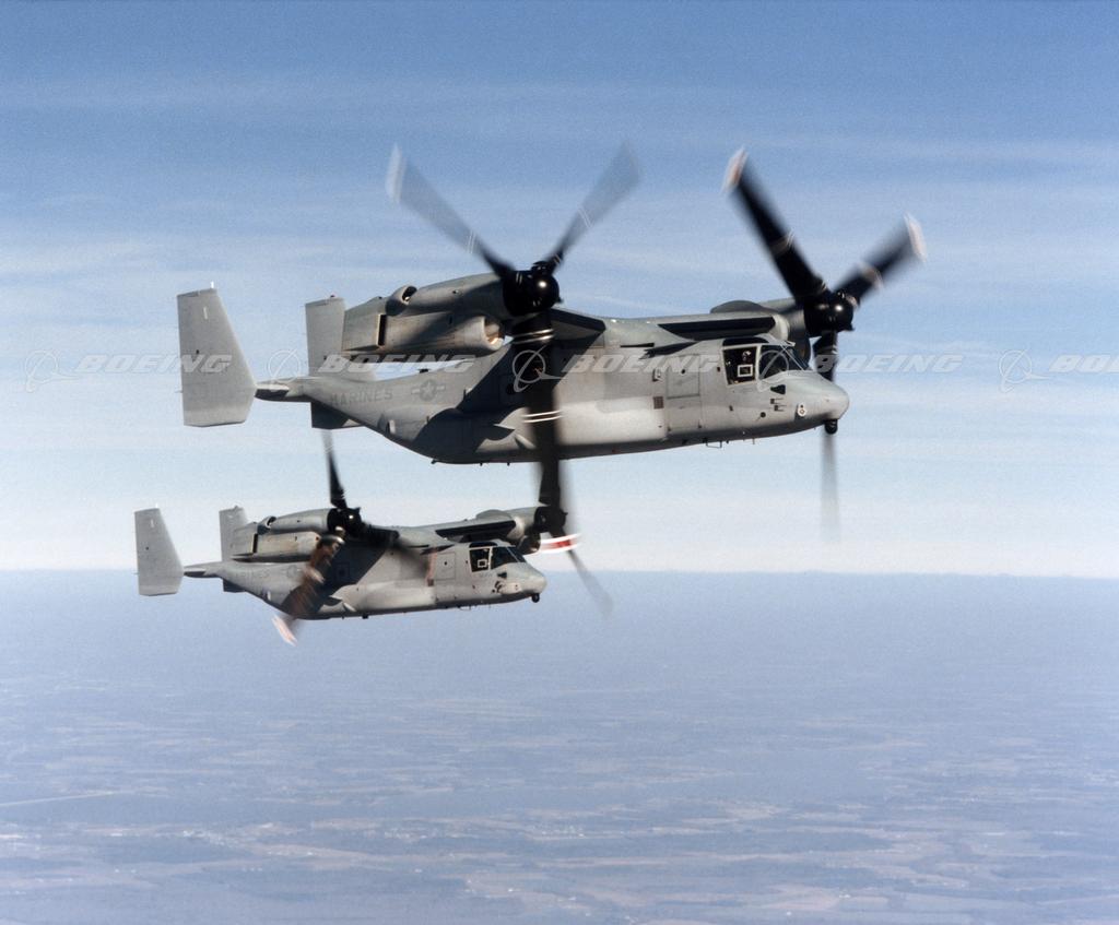 The Osprey, in development for about 25 years, is a tilt-rotor aircraft that combines the vertical takeoff, landing and hover capabilities of a helicopter with the speed, range and altitude of a turboprop airplane. Its rotors fold and wing rotates 90 degrees for storage on aircraft carrier or amphibious ship hangar decks.