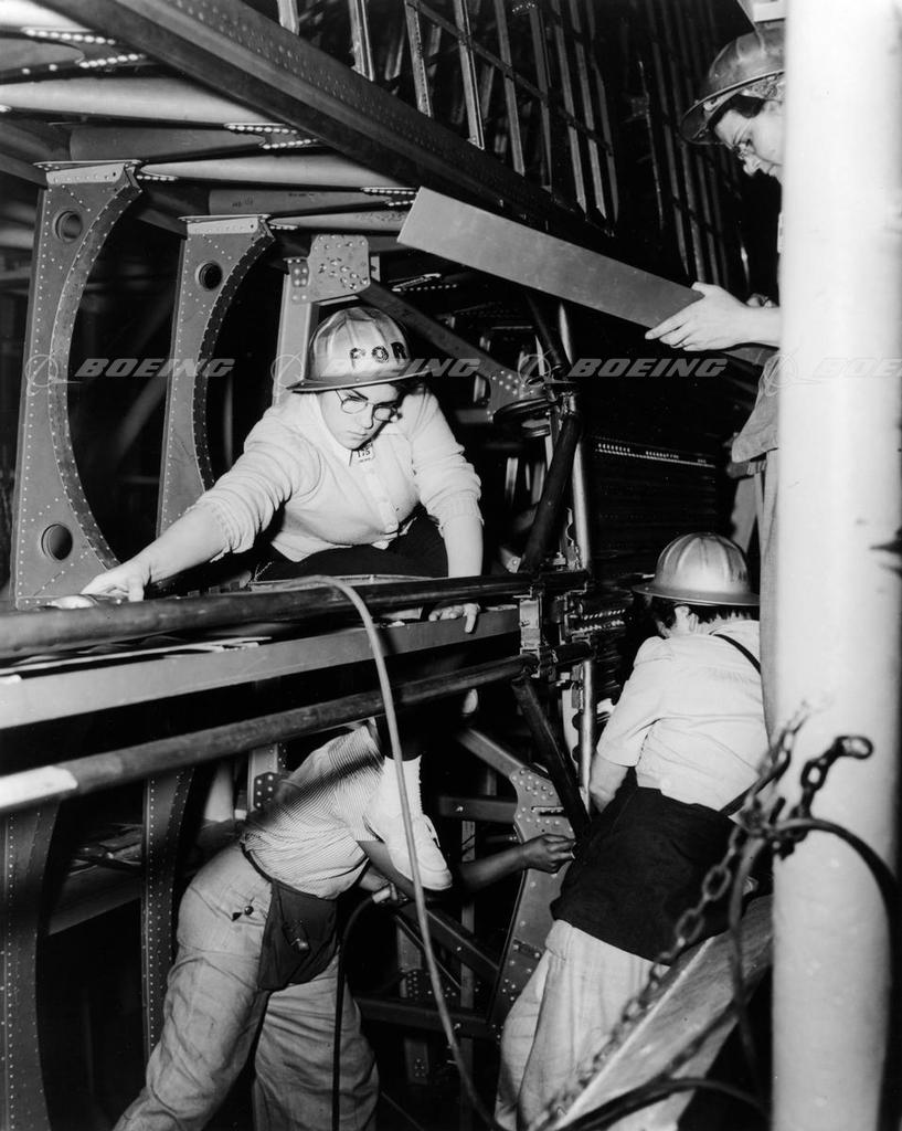 A Douglas "Rosie" in Long Beach Rivets a Boeing B-17 Tail