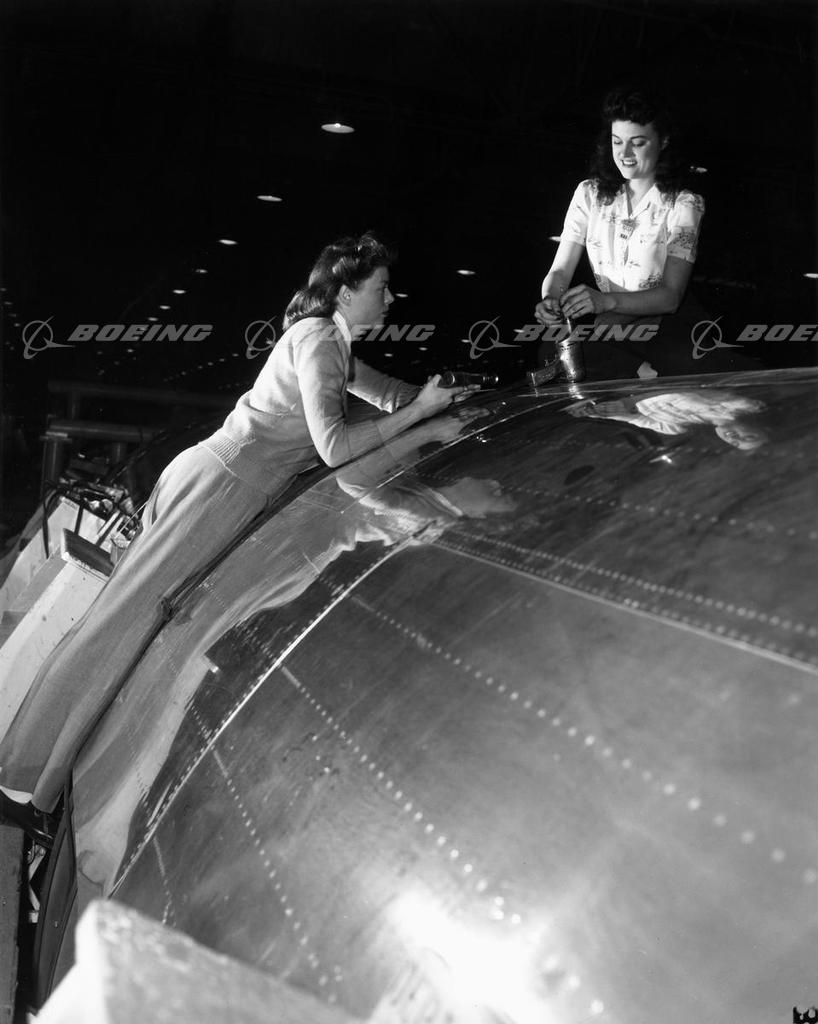 A Douglas "Rosie" in Long Beach Rivets a Boeing B-17 Tail