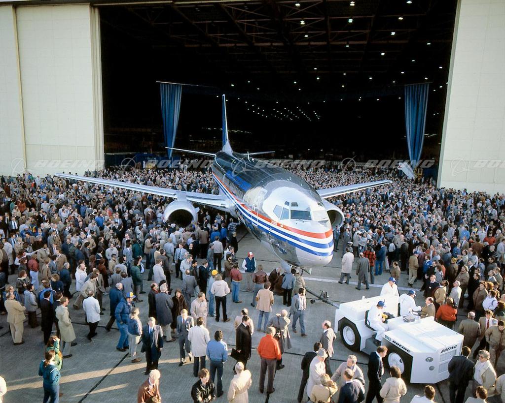 Crowd Surrounds the New 737-300 at its Rollout Ceremony in 1984