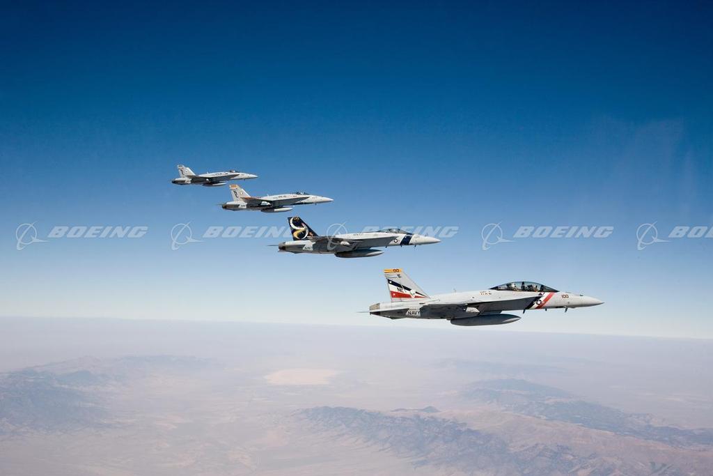 Two F/A-18C Hornets with an F/A-18E and F/A-18F Superhornet Flying in Formation