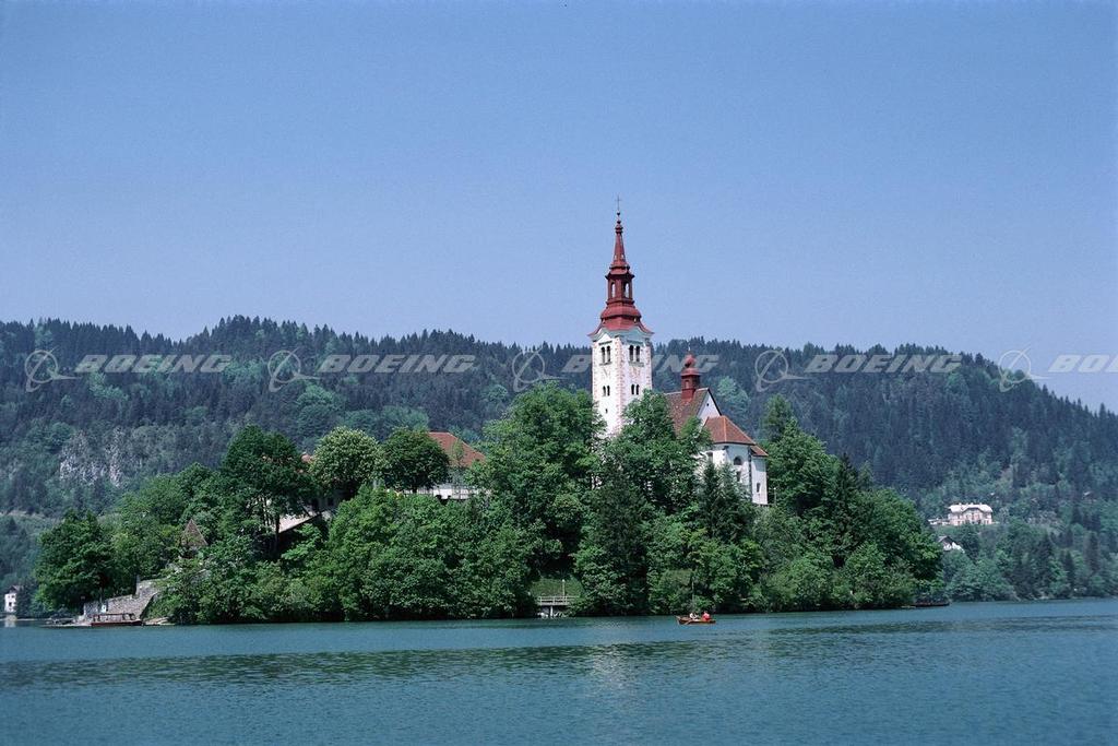 Lake Bled in northwestern Slovenia is picturesque and a popular tourist destination. It is a glacial lake in the Julian Alps surrounded by mountains and forests. The Church of Assumption on Bled Island sits in the middle of the lake.