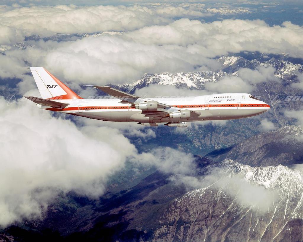 747-100 Painted as a 747-200 Flies over Snowy Mountains