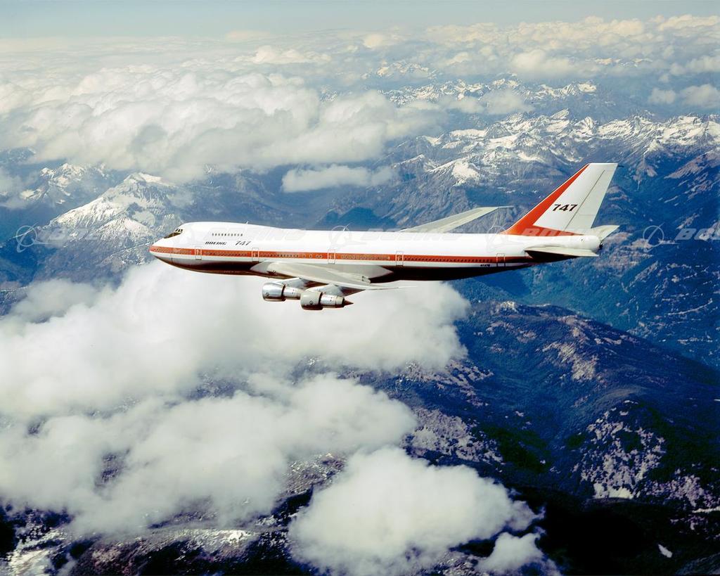747-100 Painted as a 747-200 Flies over Snowy Mountains