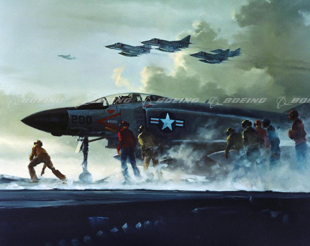 F-4 Phantoms on Aircraft Carrier, Canopies Open