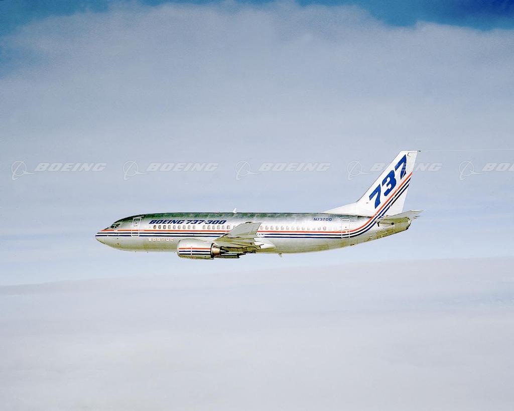 A lengthened fuselage version of the 737-200, the 737-300, was ordered into production in March 1981, with first factory rollout January 17, 1984 (pictured here). First flight of the advanced derivative was on February 24, 1984, and the first delivery to US Air came on November 28, 1984. However, the joint leadoff customer Southwest Airlines placed the first 737-300 into passenger service on December 7, 1984. Design changes resulted in lower operating costs and a reduction in fuel burn up to 30% less than the 737-200.