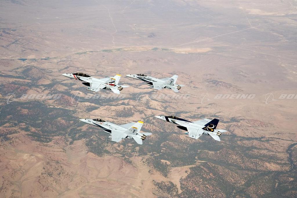 Two F/A-18C Hornets with an F/A-18E and F/A-18F Superhornet in Flight over Nevada