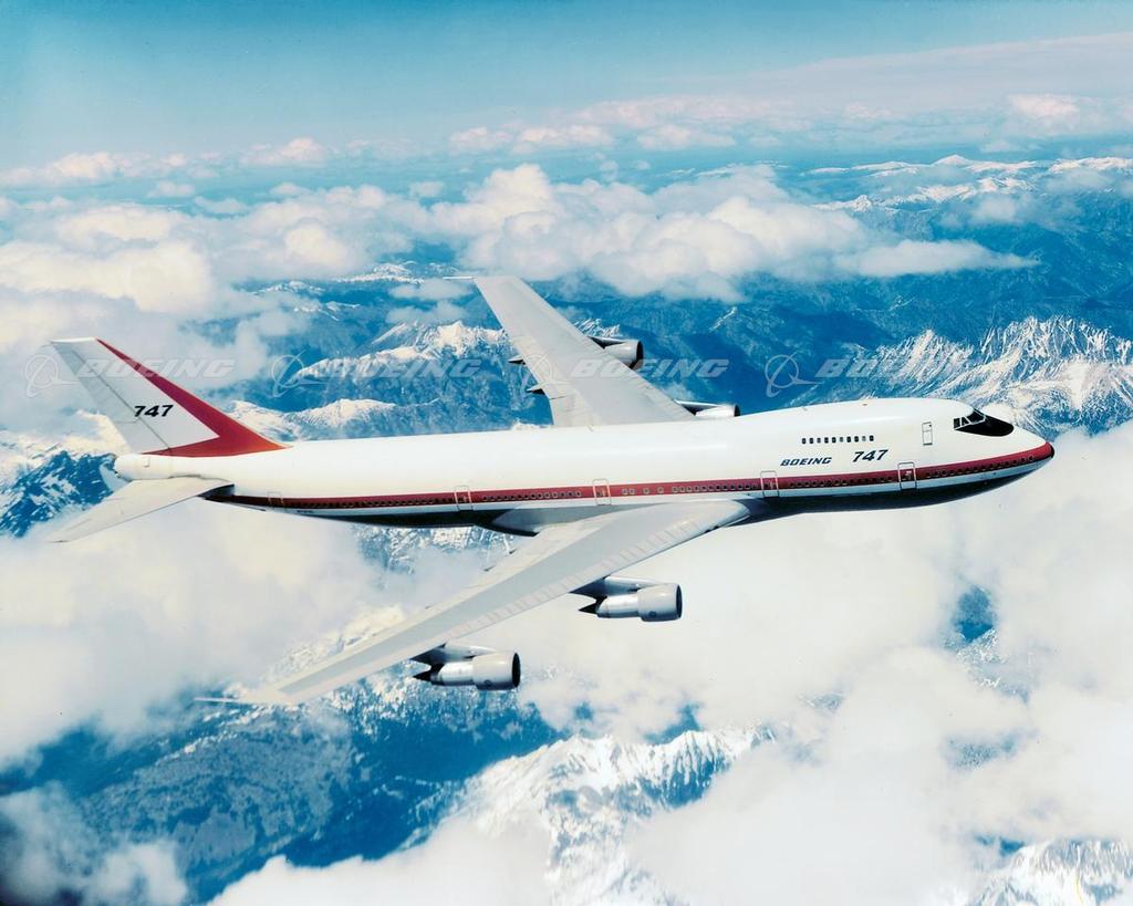 747-100 Painted as a 747-200 Flies over Snowy Mountains