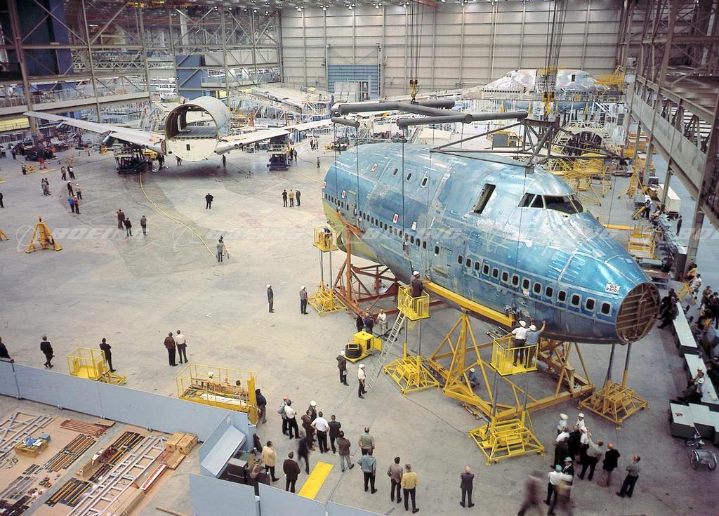 Production of the first 747s began as final phases of the Everett factory building project were completed.