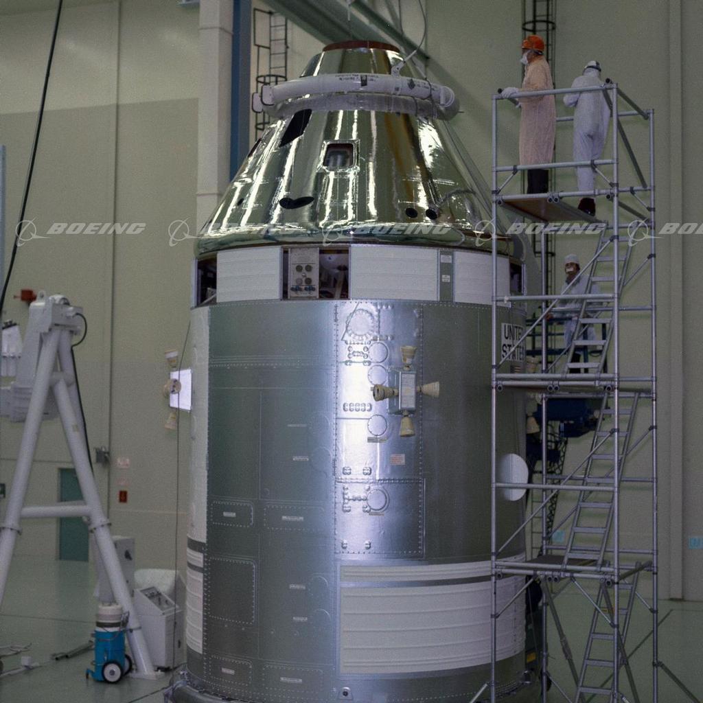 The Apollo program sent nine expeditions to the Moon. Six landed 12 astronauts on the lunar surface, starting July 20, 1969. North American developed the conical command module, where the crew rode; a cylindrical service module; and the service propulsion system. The last Apollo Moon mission was Dec. 7 to 19, 1972. Three Apollo command and service modules were used on the Skylab program, and the last Apollo mission was in July 1975, for the Apollo-Soyuz test project.