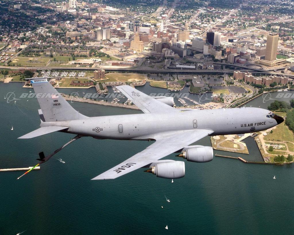 The KC-135 was the only jet airplane designed specifically for aerial refueling. More than 732 KC-135s were built, and most, with modifications, remain in service into the 21st century. The KC-135 shared the Dash-80 prototype with the Boeing 707 commercial transport, but was launched first in 1956. The KC-135's aerial refueling equipment in the lower deck leave the upper deck clear for 25 tons of cargo or 80 troops. KC-135s supplied warplanes with fuel during the Persian Gulf conflict, Operation Enduring Freedom over Afghanistan, and for homeland defense.