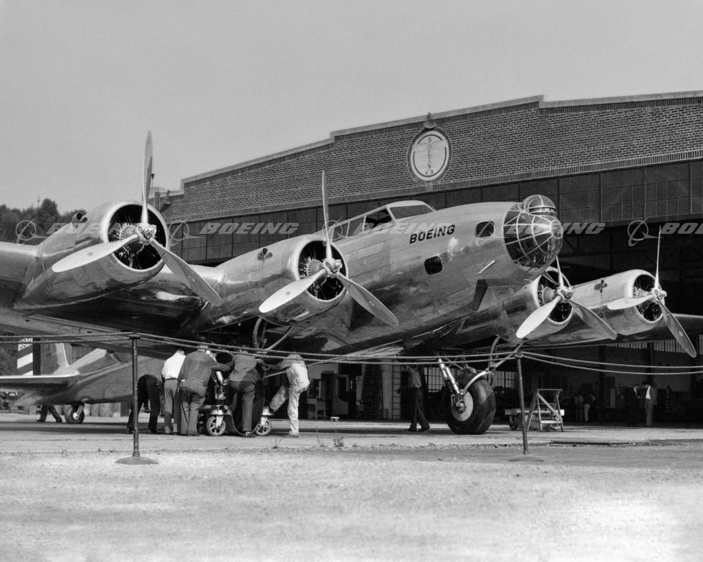 Boeing Model 299 (Flying Fortress) at Boeing Field Hangar, July 1935