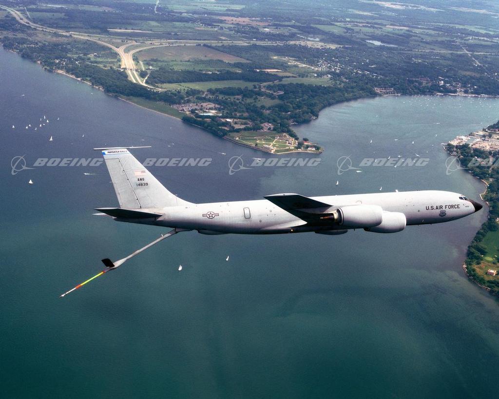 The KC-135 was the only jet airplane designed specifically for aerial refueling. More than 732 KC-135s were built, and most, with modifications, remain in service into the 21st century. The KC-135 shared the Dash-80 prototype with the Boeing 707 commercial transport, but was launched first in 1956. The KC-135's aerial refueling equipment in the lower deck leave the upper deck clear for 25 tons of cargo or 80 troops. KC-135s supplied warplanes with fuel during the Persian Gulf conflict, Operation Enduring Freedom over Afghanistan, and for homeland defense.