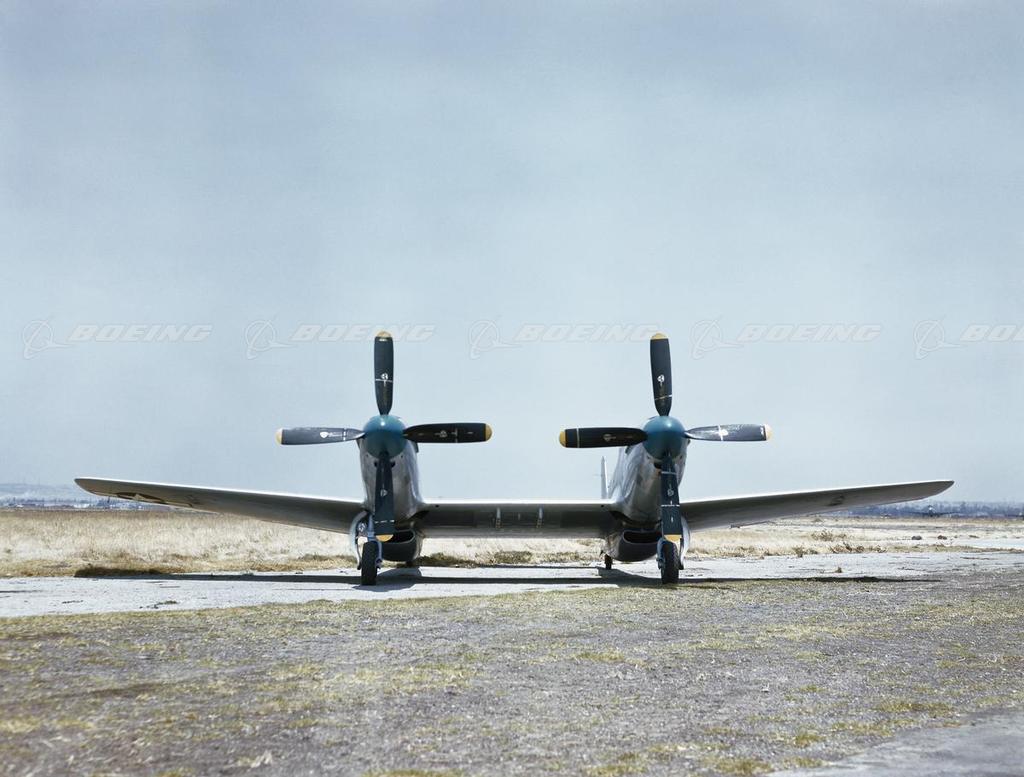 The P-82 Twin Mustang/F-82 Twin Mustang fighter first flew June 15, 1945. Looking like two Mustang fuselages on one wing, its twin cockpits allowed the pilot and copilot to share the workload on long-range missions. During the Korean conflict, the first three North Korean airplanes destroyed by U.S. forces were shot down by F-82G interceptors. The Twin Mustang had a wingspan of 51 feet 3 inches and was 39 feet long. It was adapted as a fighter, long-range escort, reconnaissance airplane, night fighter, attack bomber, rocket fighter, and interceptor.