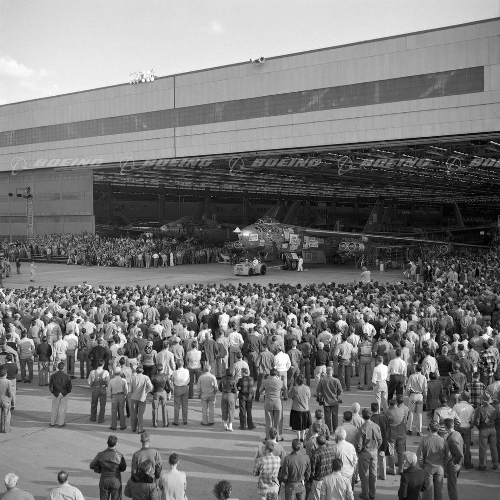 B-47 Stratojet at Rollout Ceremony for B-52D Stratofortress Number1