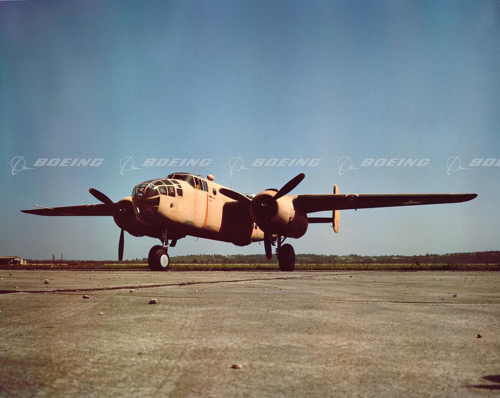 It required 8,500 original drawings and 195,000 engineering man-hours to produce the first B-25 Mitchell, but nearly 10,000 were produced from late 1939, when the contract was awarded to North American Aviation, through 1945.
