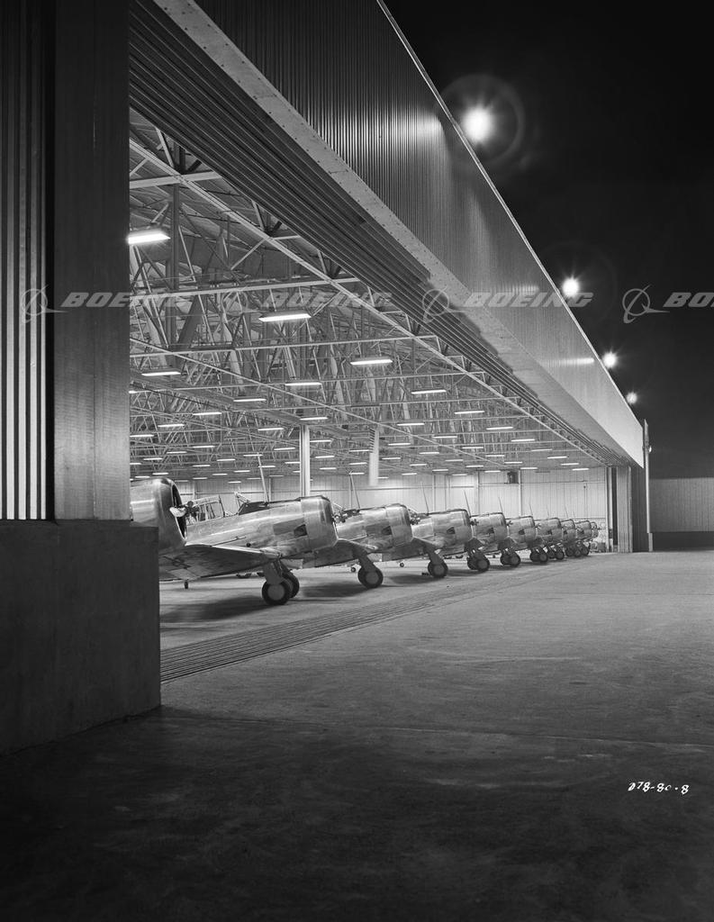 The rugged AT-6 Texan (Harvard) trainers served with American military services for 25 years and in more than 30 other countries. North American Aviation built more than 15,800 Texans and SNJs (the Navy version), beginning in 1938 with the first NA-49 Harvard for the British Royal Air Force. They began delivering the AT-6 to the U.S. Army Air Corps on Feb. 10, 1940. With a wingspan of 42 feet, the trainers, powered by a 550-horsepower engine, could fly 205 mph.