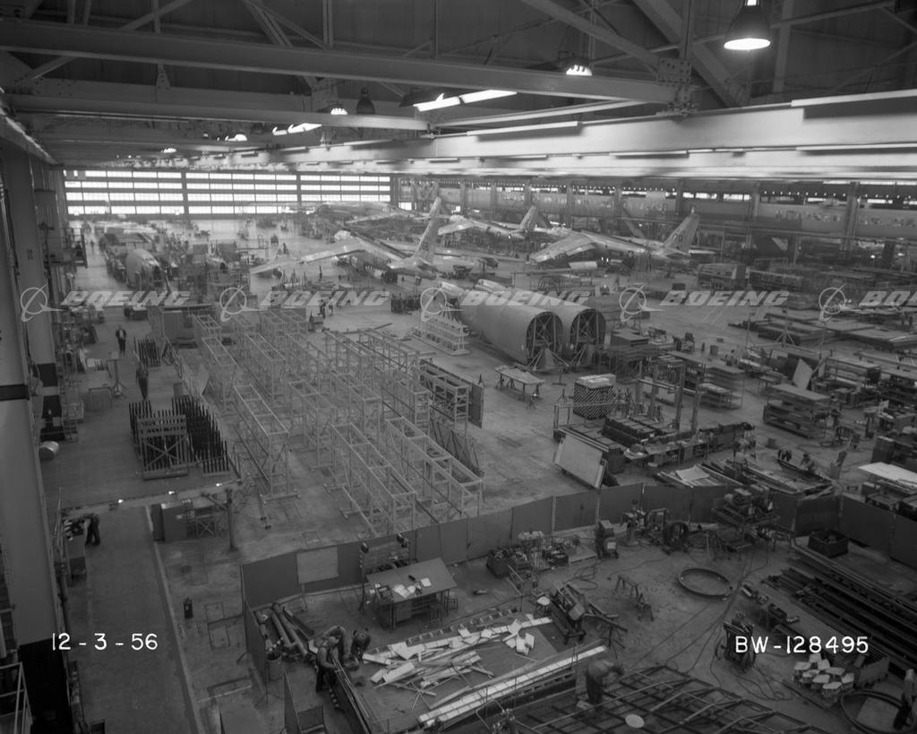 At the time of its first flight, Dec. 17, 1947, the B-47 Stratojet represented a radical departure from traditional design, and it set the design standards for all large jet aircraft until the present time. The six-engine Boeing B-47 was America's first multiengine swept-wing jet bomber. Its thin 116-foot wing was extraordinarily flexible and swept back at a 35-degree angle. Eighteen small rocket units in the fuselage provided jet-assisted takeoff (JATO), and parachutes cut its landing speeds. Later models were powered by 5,200-pound-thrust axial-flow jet engines, and top speeds were 600 mph. A total of 2,032 B-47s in all versions were built.