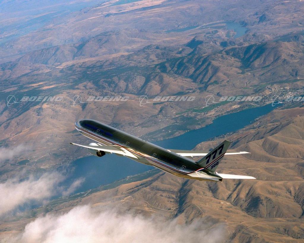 The wide-body Model 777 was the first commercial jet that was 100 percent digitally designed using three-dimensional solids technology. It earned the Collier Trophy for top aeronautical achievement in 1996. The twinjet commercial transport uses fuel efficiently, and its comfortable cabin is very popular with passengers. The 777-200 can take 305 passengers 5,995 miles. The 777-300 can carry 368 passengers 6,899 miles. Launched in February 2000, the 777-200LR and 777-300ER will fly 9,420 or 7,880 nautical miles, respectively.