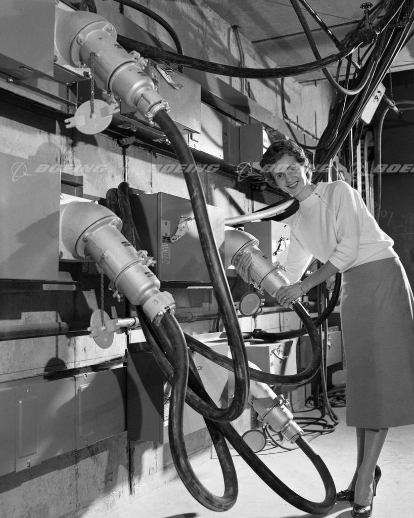 Woman with a Cutaway Pratt and Whitney R-4360 Aircraft Engine