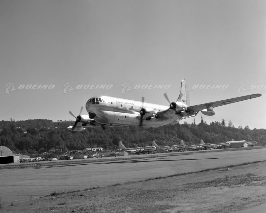 KC-97 Stratofreighter Flying Low Over Airstrip