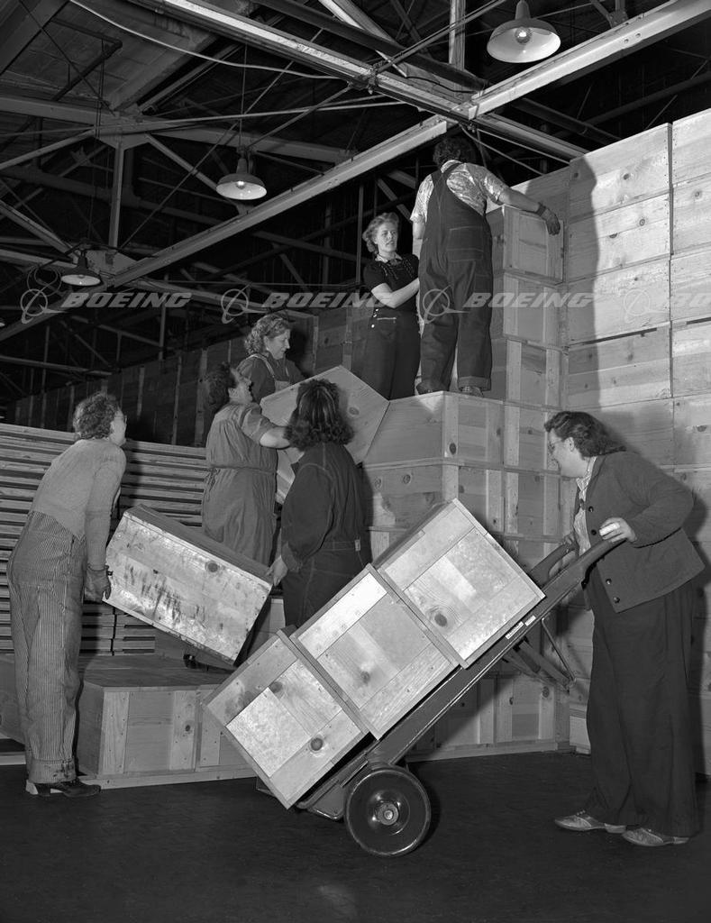 Douglas "Rosies" Wing Jig Crew Assemble a Boeing B-17 During WWII