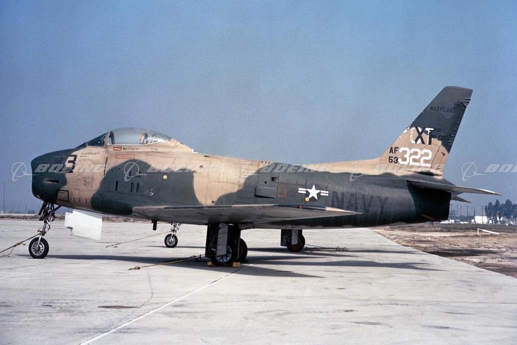 The North American F-86 Sabre Jet made its first flight Oct. 1, 1947, and was America’s first single-seat, swept-wing jet fighter. In 1948, it set a new world speed record of 671 mph, and it was the world’s first-line fighter for more than a decade after it was designed. More than 6,000 Sabre Jets were built worldwide. During the Korean conflict, the Sabre Jet flew 82,177 sorties during 32 months of combat and troop support. The version built for the U.S. Navy and Marine Corps was called the FJ-2 Fury.