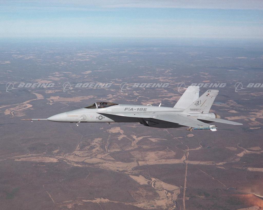 F/A-18E Super Hornet in Flight with F/A-18C Hornet