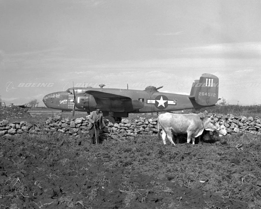 B-25C Mitchell in Rural Italian Field with Oxen