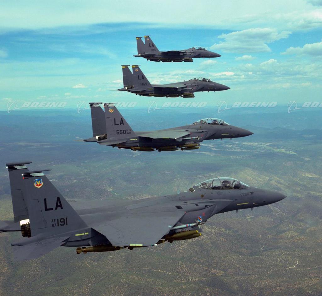 Formation of F-15E Strike Eagles in Flight