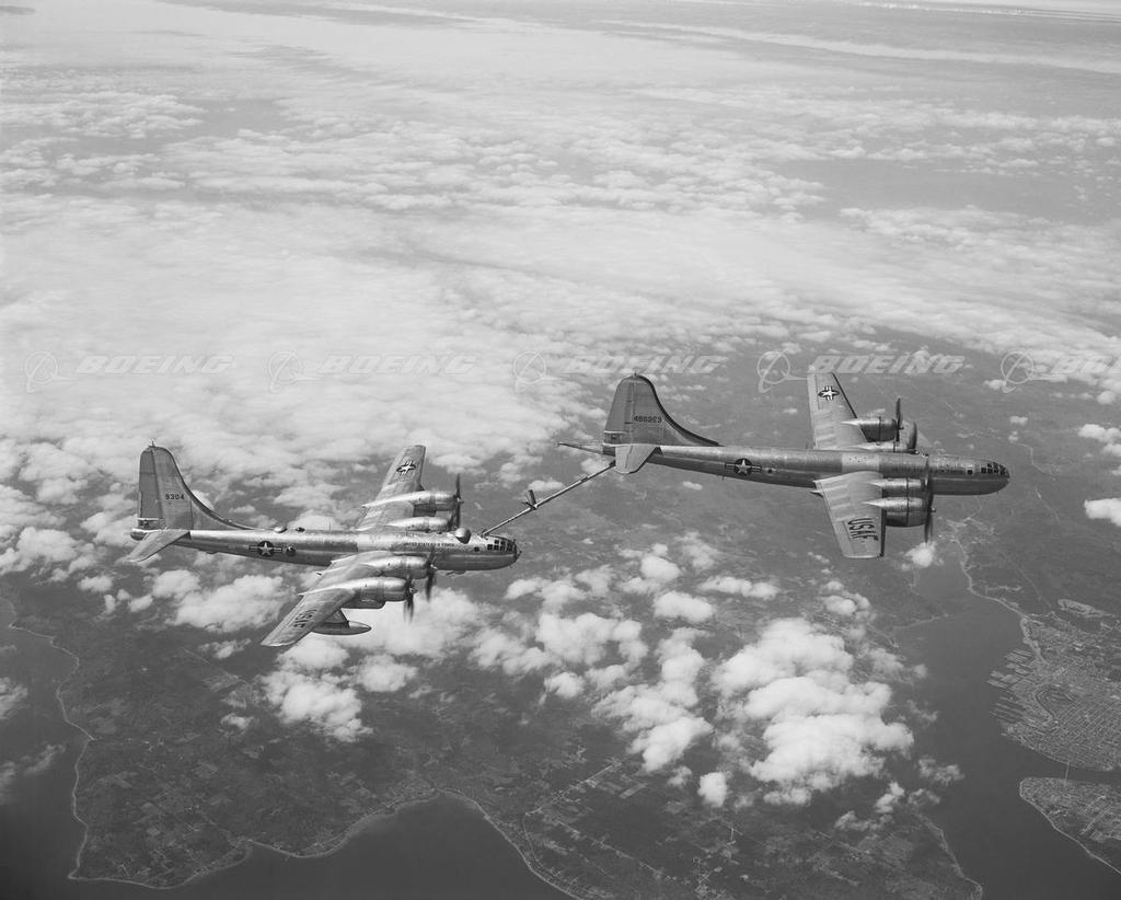 An entirely new career began for the B-29 Superfortress when the Strategic Air Command decided to use aerial refueling to extend the range of bombers and fighters rather than ordering new, longer range bombers. In 1950, KB-29P tankers equipped with the revolutionary Boeing-designed flying boom refueling system, began operation.