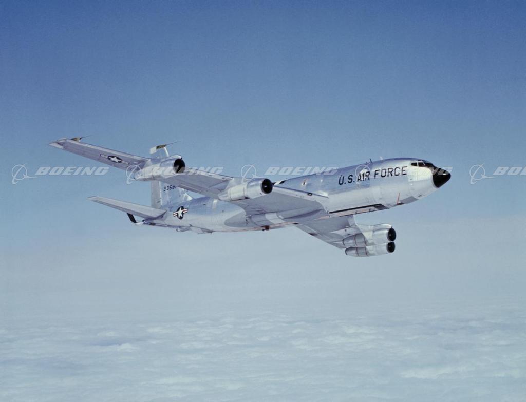 The KC-135 was the only jet airplane designed specifically for aerial refueling. More than 732 KC-135s were built, and most, with modifications, remain in service into the 21st century. The KC-135 shared the Dash-80 prototype with the Boeing 707 commercial transport, but was launched first in 1956. The KC-135’s aerial refueling equipment in the lower deck leaves the upper deck clear for 25 tons of cargo or 80 troops. KC-135s supplied warplanes with fuel during the Persian Gulf conflict, Operation Enduring Freedom over Afghanistan, and for homeland defense.