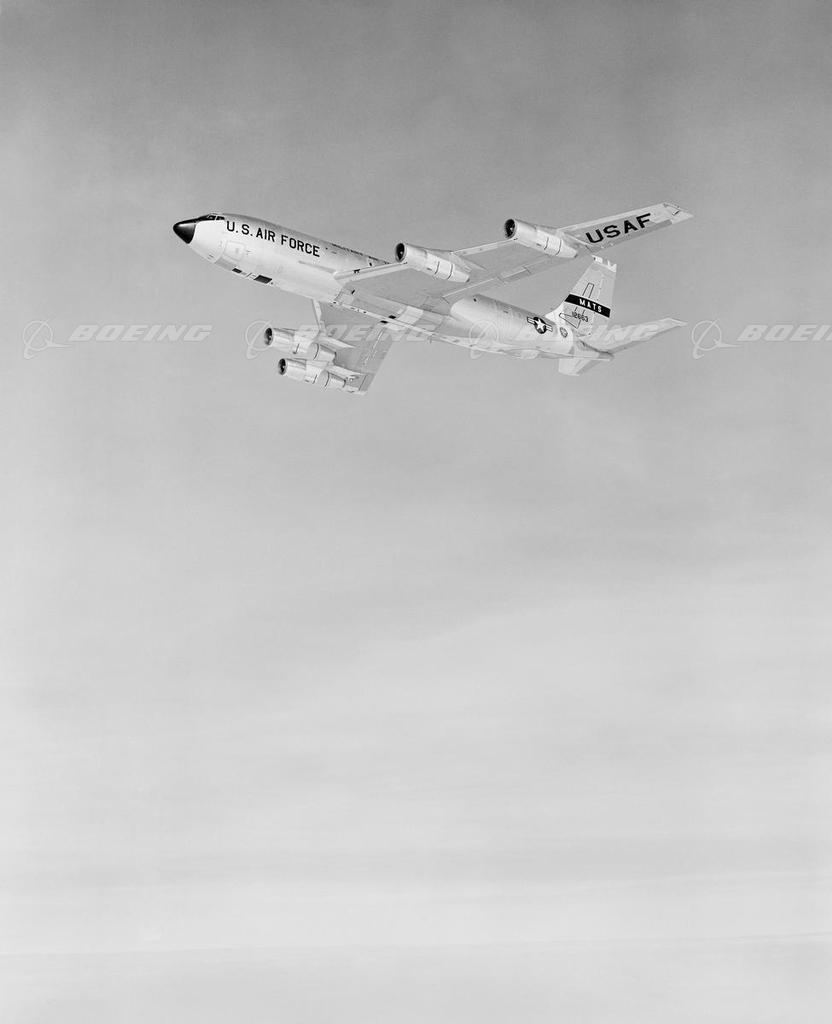 The KC-135 was the only jet airplane designed specifically for aerial refueling. More than 732 KC-135s were built, and most, with modifications, remain in service into the 21st century. The KC-135 shared the Dash-80 prototype with the Boeing 707 commercial transport, but was launched first in 1956. The KC-135’s aerial refueling equipment in the lower deck leaves the upper deck clear for 25 tons of cargo or 80 troops. KC-135s supplied warplanes with fuel during the Persian Gulf conflict, Operation Enduring Freedom over Afghanistan, and for homeland defense.